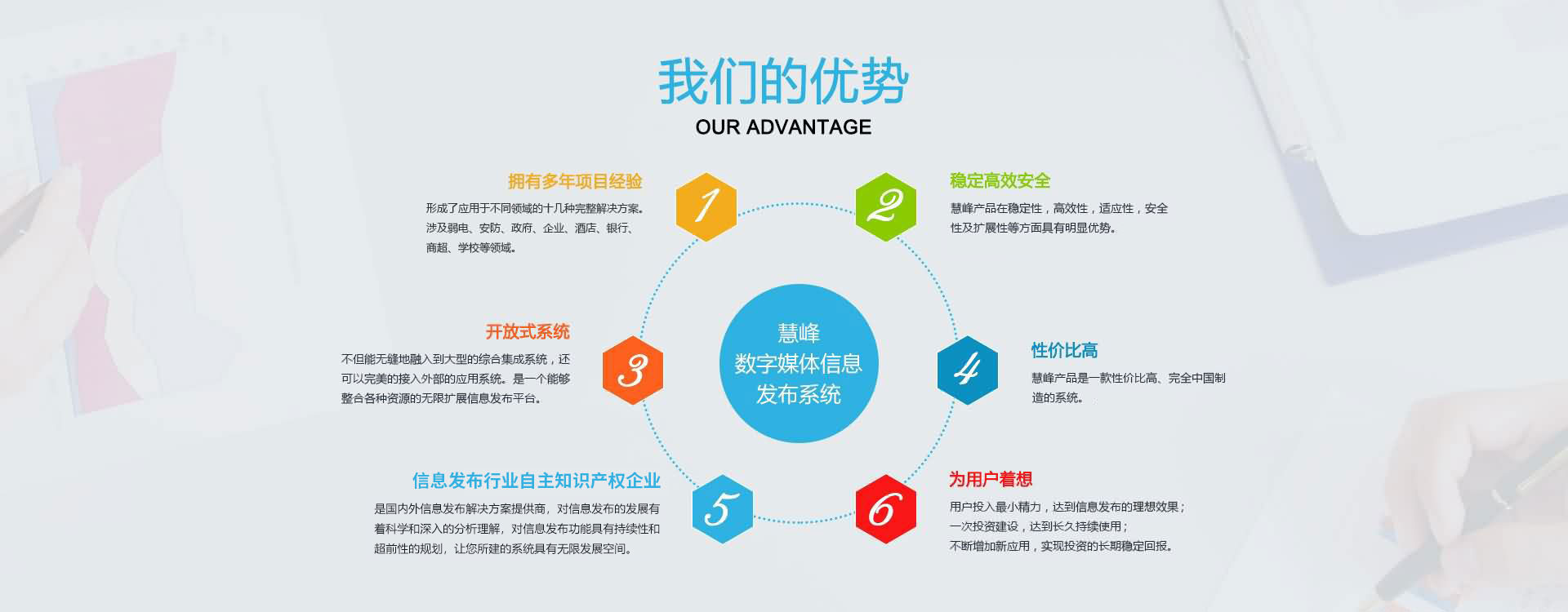 公司本著互惠互利,誠實信用的原則,真誠面對用戶,并愿與社會各界展開廣泛的合作。 公司現(xiàn)已是國內(nèi)的數(shù)字媒體信息發(fā)布系統(tǒng)解決方案提供商,產(chǎn)品涉及大中型企業(yè)、商業(yè)地產(chǎn)、各級黨政機關(guān)、軍隊、司法、信息通信、金融、醫(yī)療、教育、能源交通、公用事業(yè)領域。